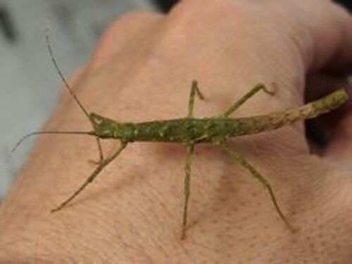 冬に孵化したトゲナナフシは順調に育っています。 トゲナナは、通常は枯れ枝のごとく茶色なのですが、ときどき緑色の個体がみつかります。 現在飼育中のトゲナナフシ幼虫5匹は、どれも緑がかかった体色なのです。 緑色は先天的なものなのか、後天的なものな…